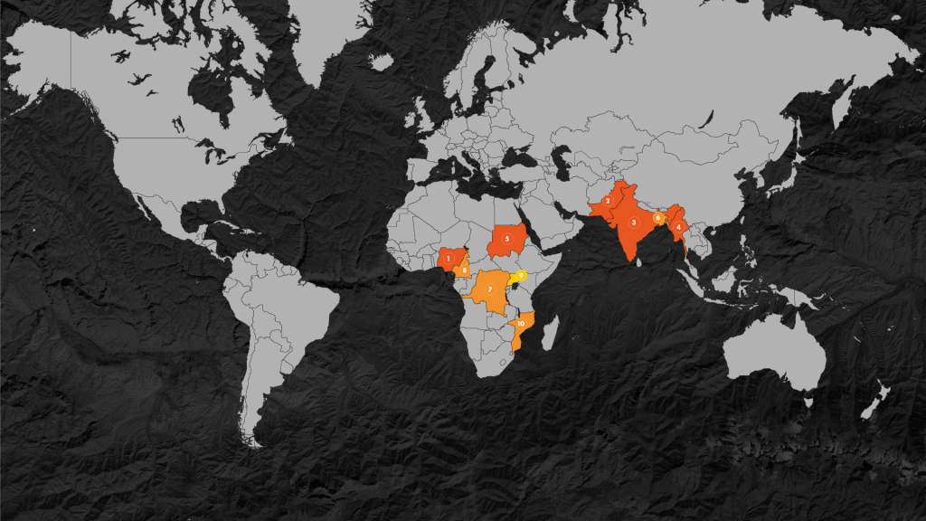 Herunder kan du se top-50 på World Watch List 2025. Vi har beskrevet situationen i hvert enkelt land, så du kan blive klogere på,